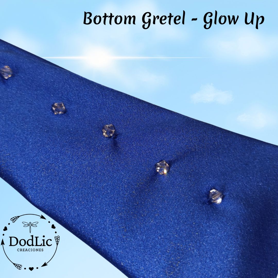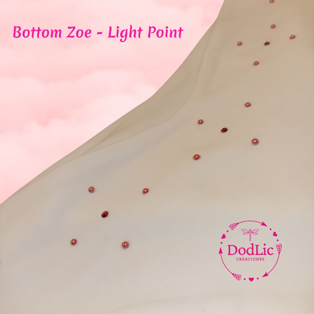 De nuestra parte como DodLic Creaciones, aportamos glamour y exclusividad al bottom con 12 cristales Beads Swarovski de 4mm. transparentes, pero brillantes divididos en el borde superior de las caderas.
