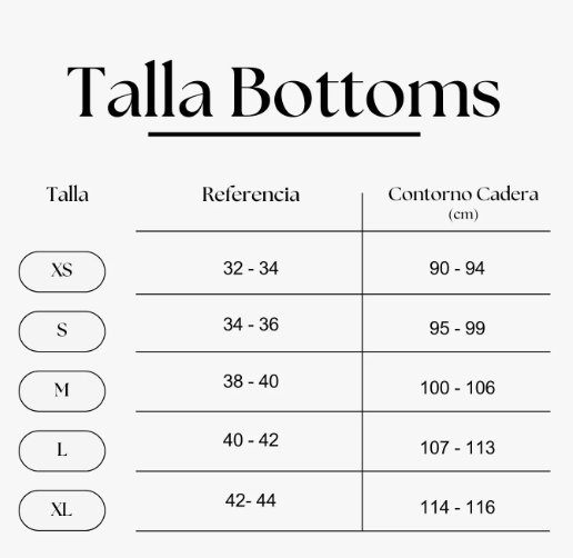 OBS. No se permiten cambios en los bottoms por razones de higiene.