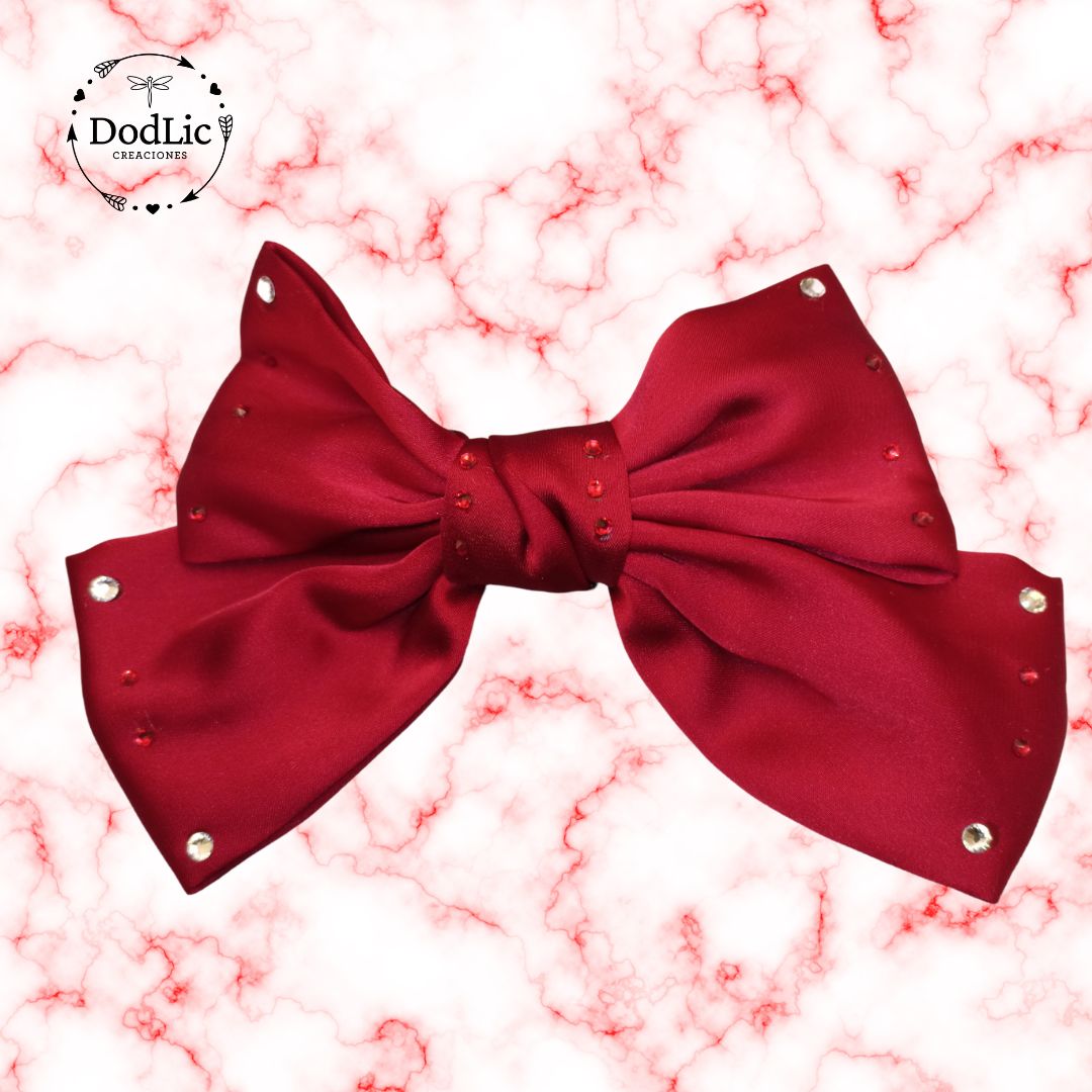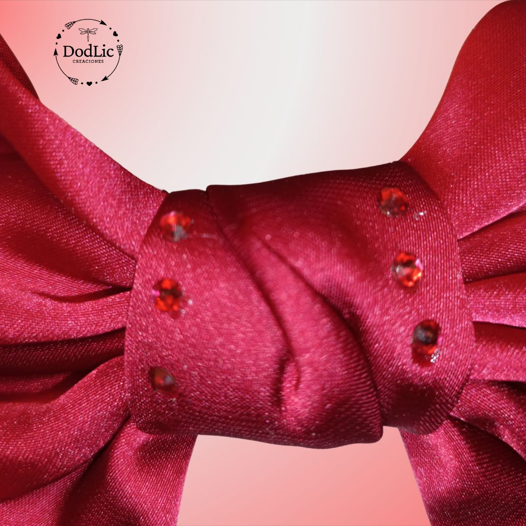 Agrega sofisticación a tu peinado con nuestro exquisito lazo de satín en un vibrante color rojo.
